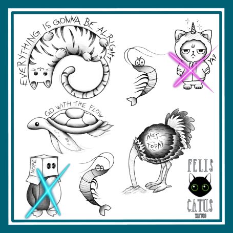 Wannados sind Motive, die bereits fertig sind und die ich gerne tätowieren würde. Es gibt, je nach Motiv und Stil eine gewisse Mindestgröße, vieles lässt sich aber flexibel anpassen. Wannados werden nur einmal tätowiert.